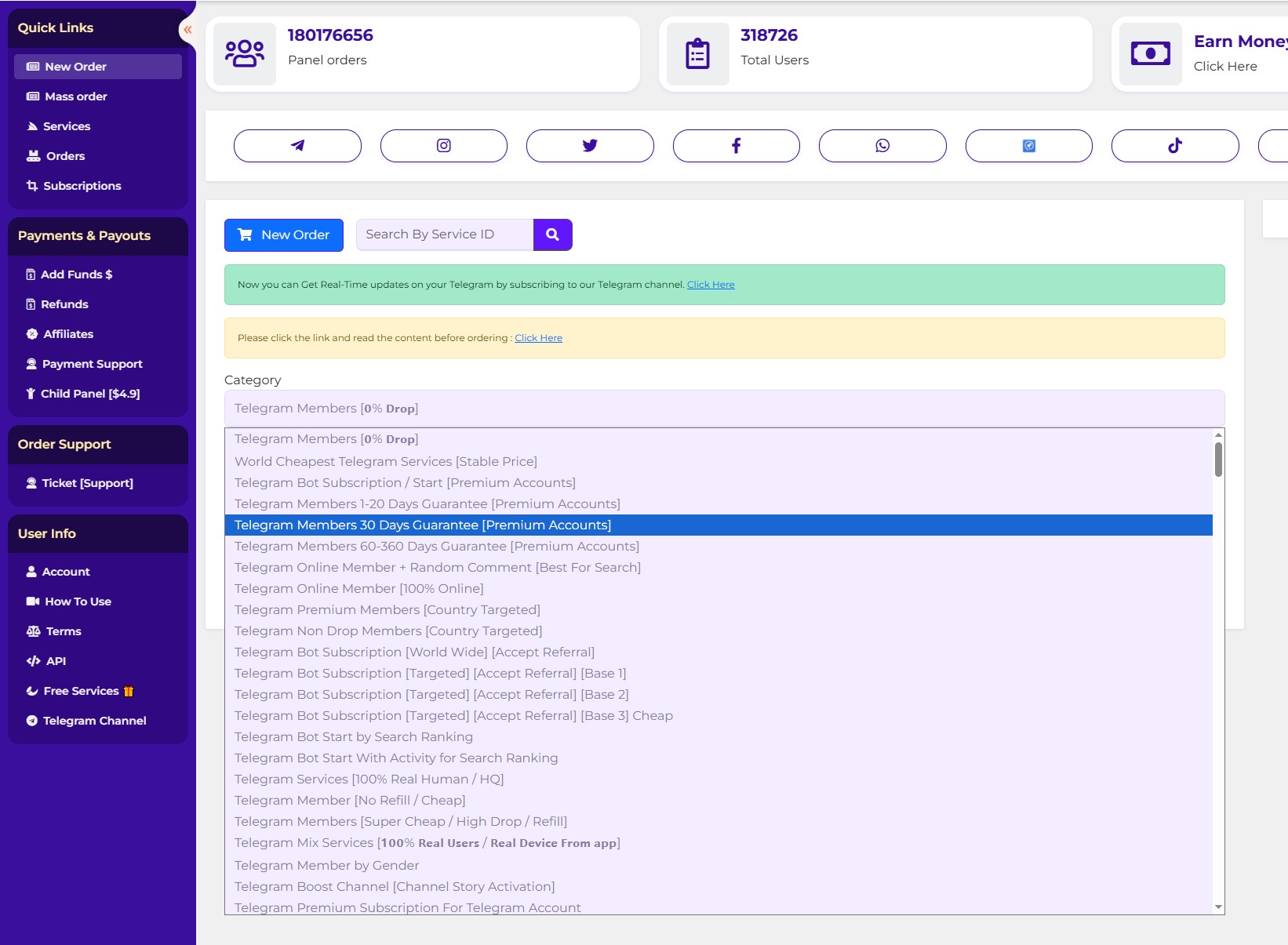 Instagram SMM панель Telegram TikTok Twitter
